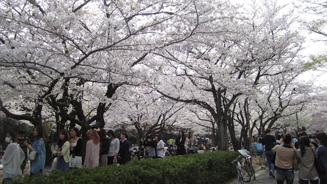 Russell and I packed the picnic backpack one more time, called our fellow Hanamist, Nancy, and headed off to Yoyogi Park. We weren't the only ones. It was only Tuesday but apparently, everyone wanted to savor the season too.