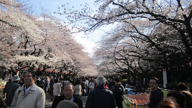 The best source for cherry blossom viewing I found is http://japan-guide.com/. Not only do they have a list of the top 100 cherry blossom viewing locations in Japan and Tokyo, but they also report on where, and more importantly, WHEN, the blossoms are the best and how they are progressing through the season. The report I read that day said the cherry blossoms in Ueno Park had the most trees in bloom at 50% to 80%, so we headed there.